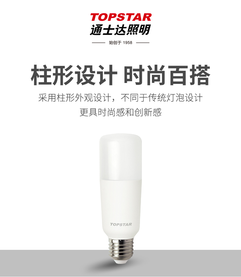 采用柱形外觀(guān)設計,不同于傳統燈泡設計,更具時(shí)尚感和創(chuàng )新感
